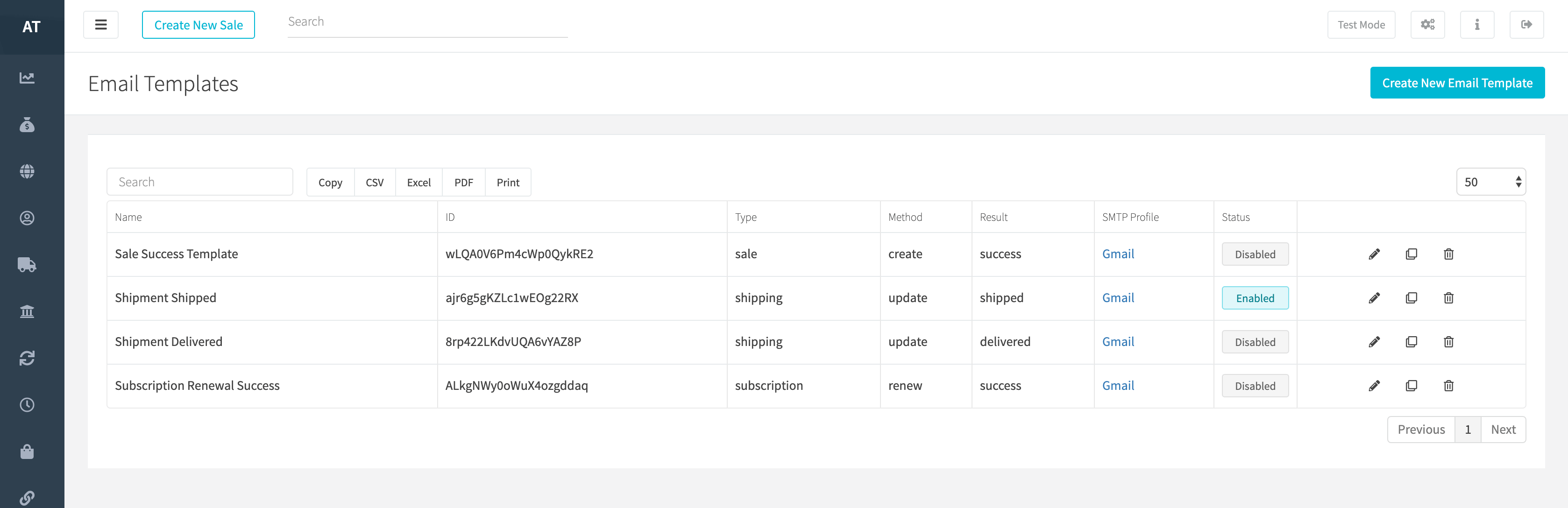 Pick the email alerts you want to send, and disable the ones you don't. Set rules for triggering the emails based on campaign, sales channel, products sold, and more.