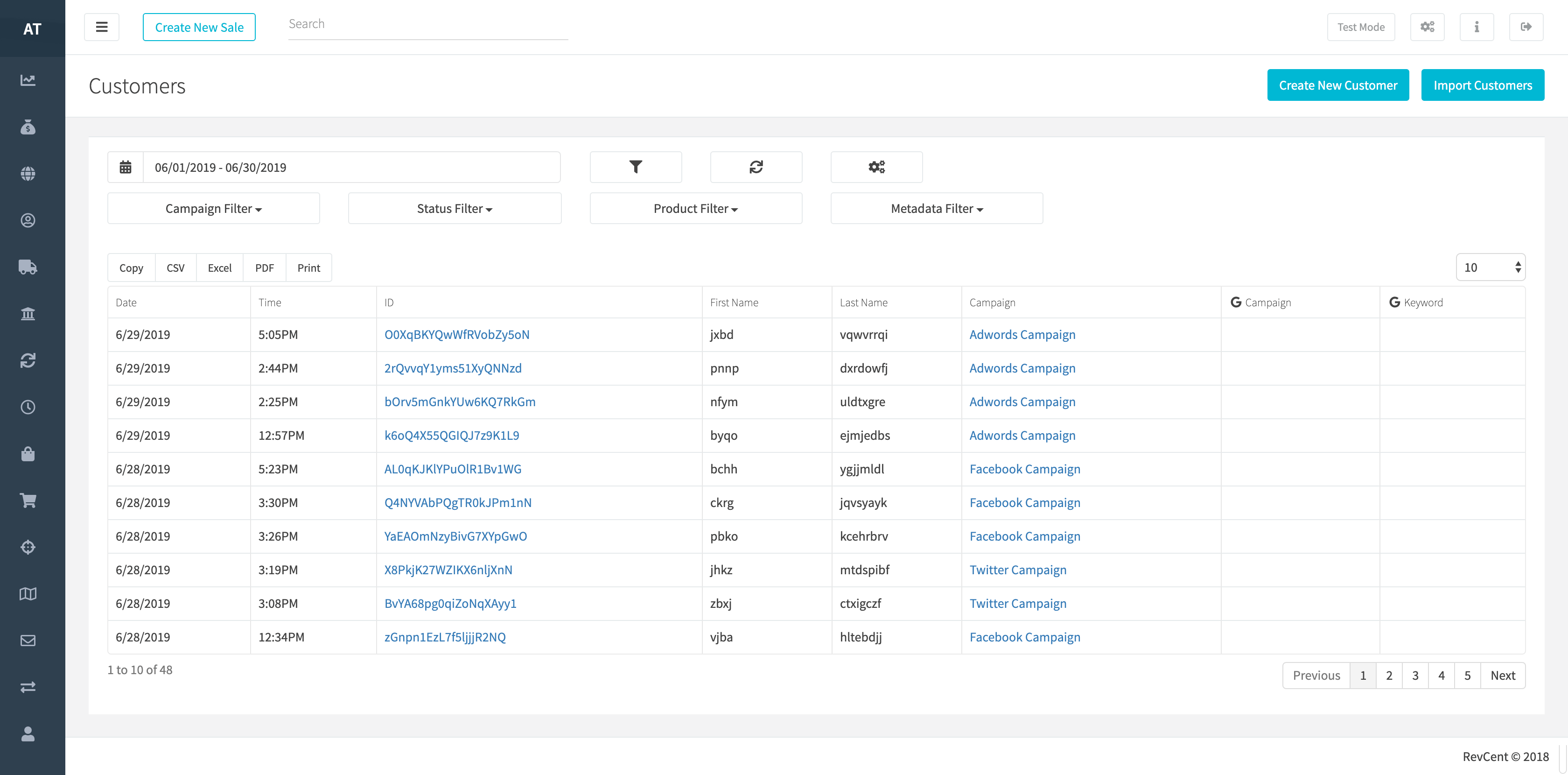 Filter, manage and edit your customers' data, as well as update payment methods and quickly place new sales for them.