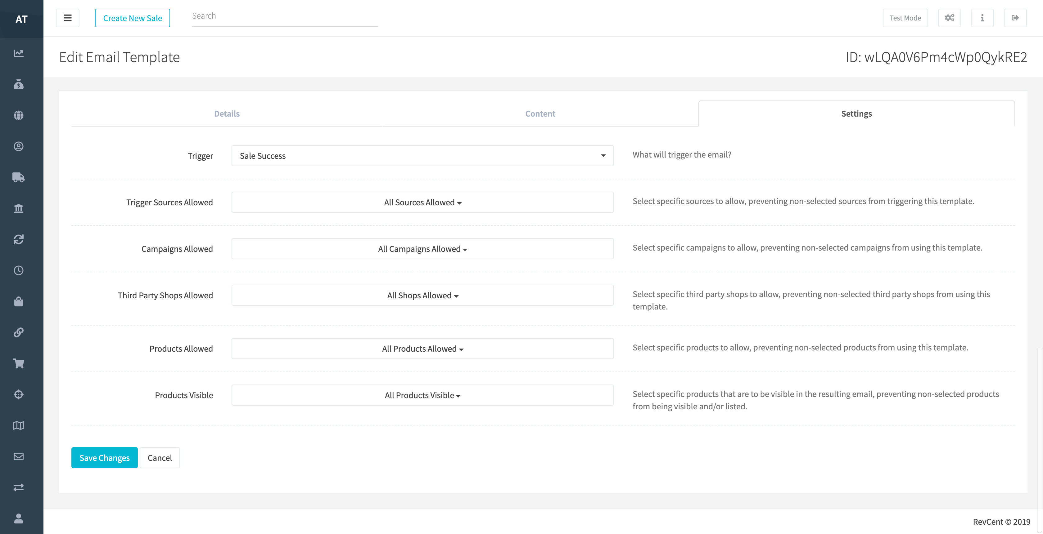 Pick the email alerts you want to send, and disable the ones you don't. Set rules for triggering the emails based on campaign, sales channel, products sold, and more.