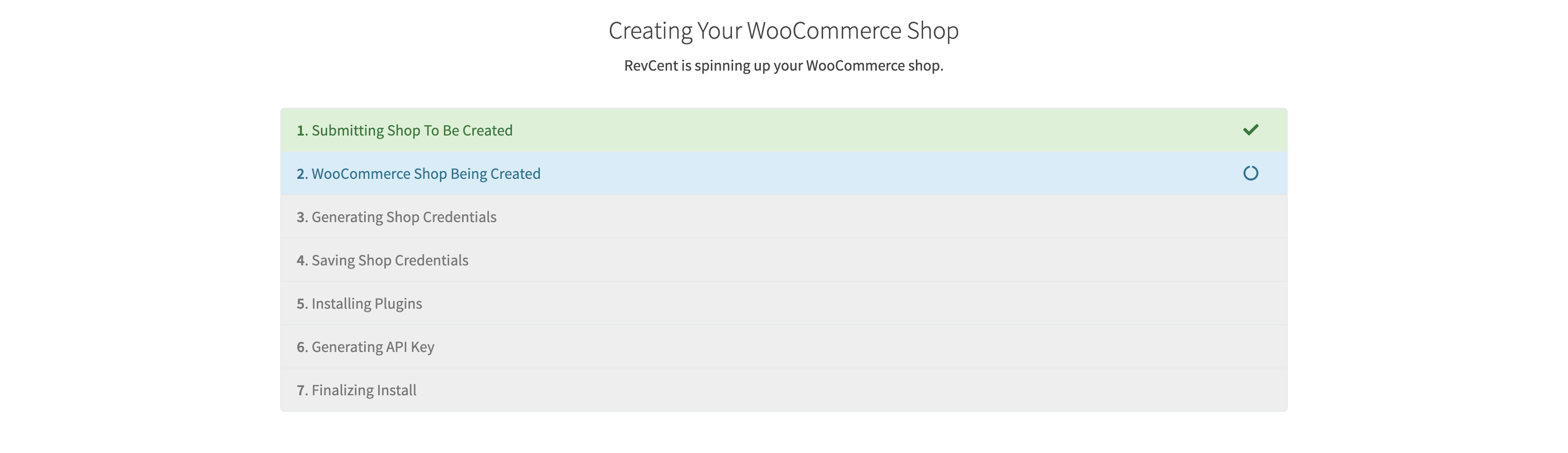 Sit back and watch Icon Payment create your WooCommmerce shop. Icon Payment will create the private server, set up WooCommerce and install all necessary plugins.