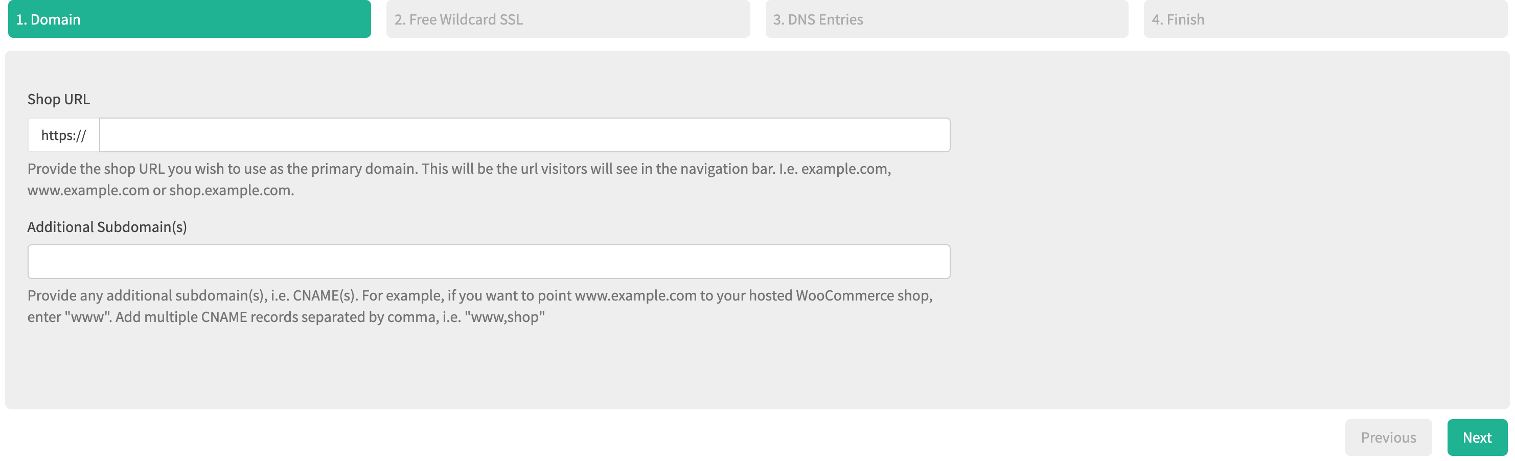 When you are ready to go live, use the custom domain wizard to begin the process of pointing your domain to your WooCommerce shop.